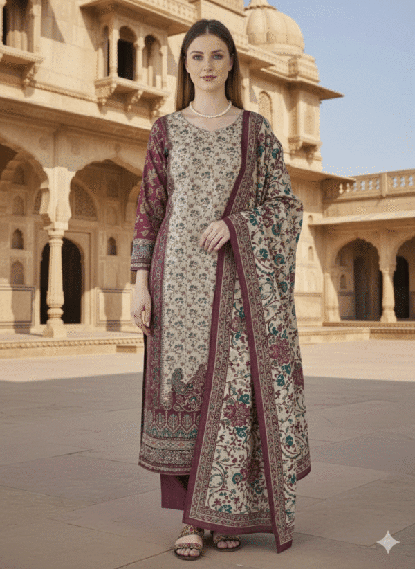 Dusty Rose & Warm Beige Pure Cotton Embroidered Dress Material Set